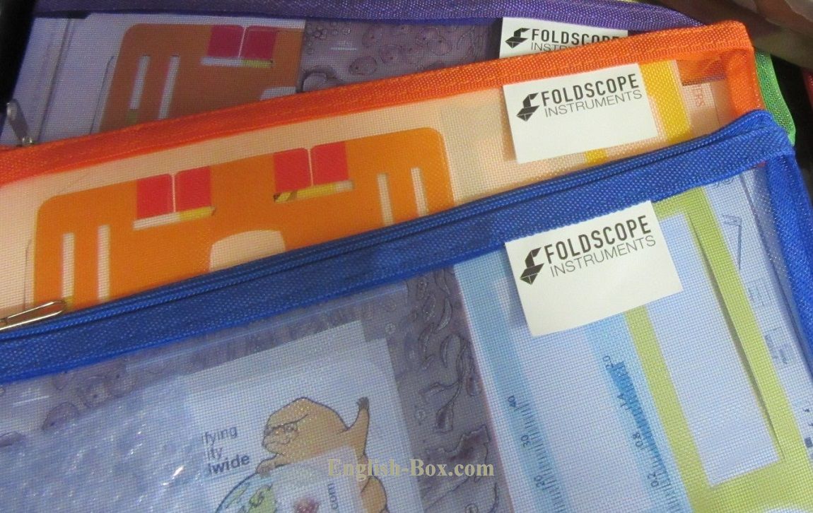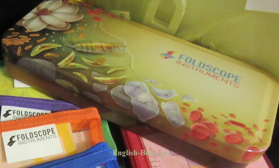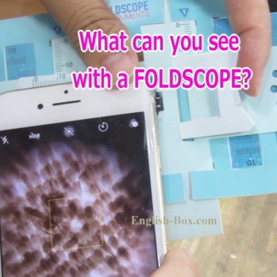 Foldscope(フォールドスコープ)というのは、紙でできた顕微鏡です。 また、”Foldscope” は、辞書に載っている英単語ではなく、この顕微鏡の商品名です。