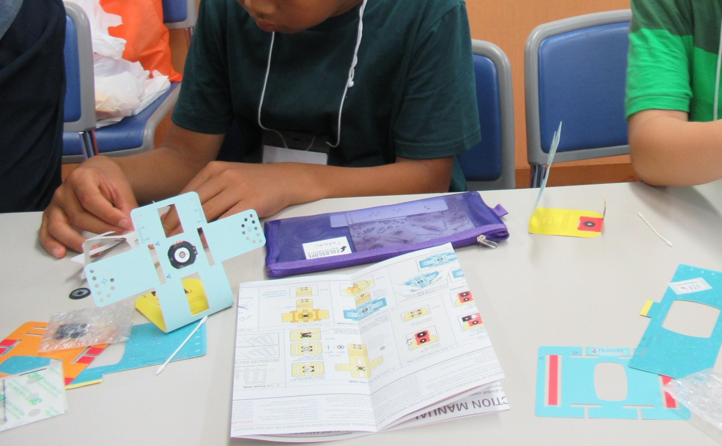 (写真:2019年8月 イングリッシュキャンプで子どもたちもフォールドスコープの組み立てに挑戦しました!)Foldscope(フォールドスコープ)の購入方法〜どこで買える?