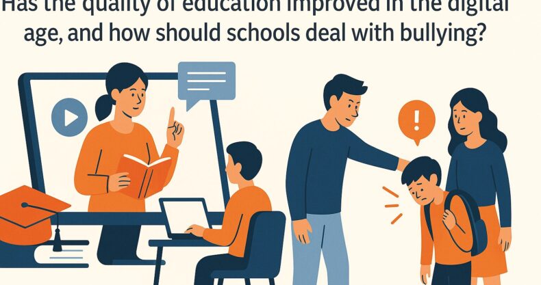 トピック: Has the quality of education improved in the digital age, and how should schools deal with bullying?